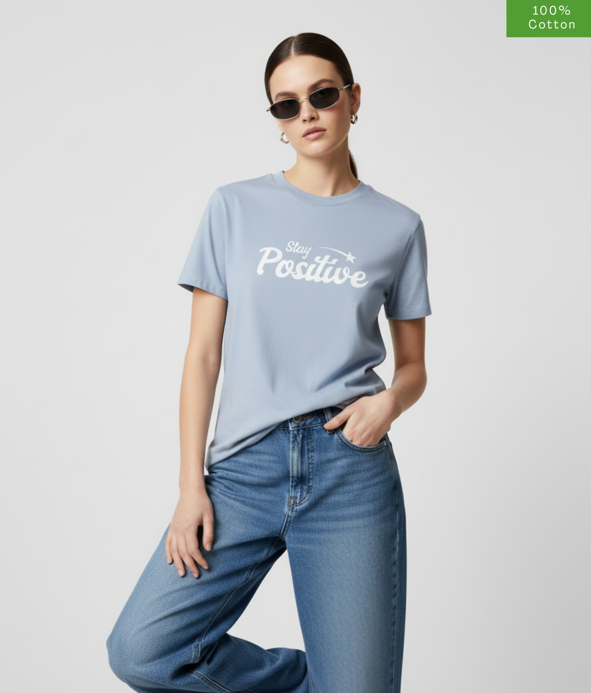 "Stay Positive" Oversized Fit T-Shirt, Cotton, Heavyweight.