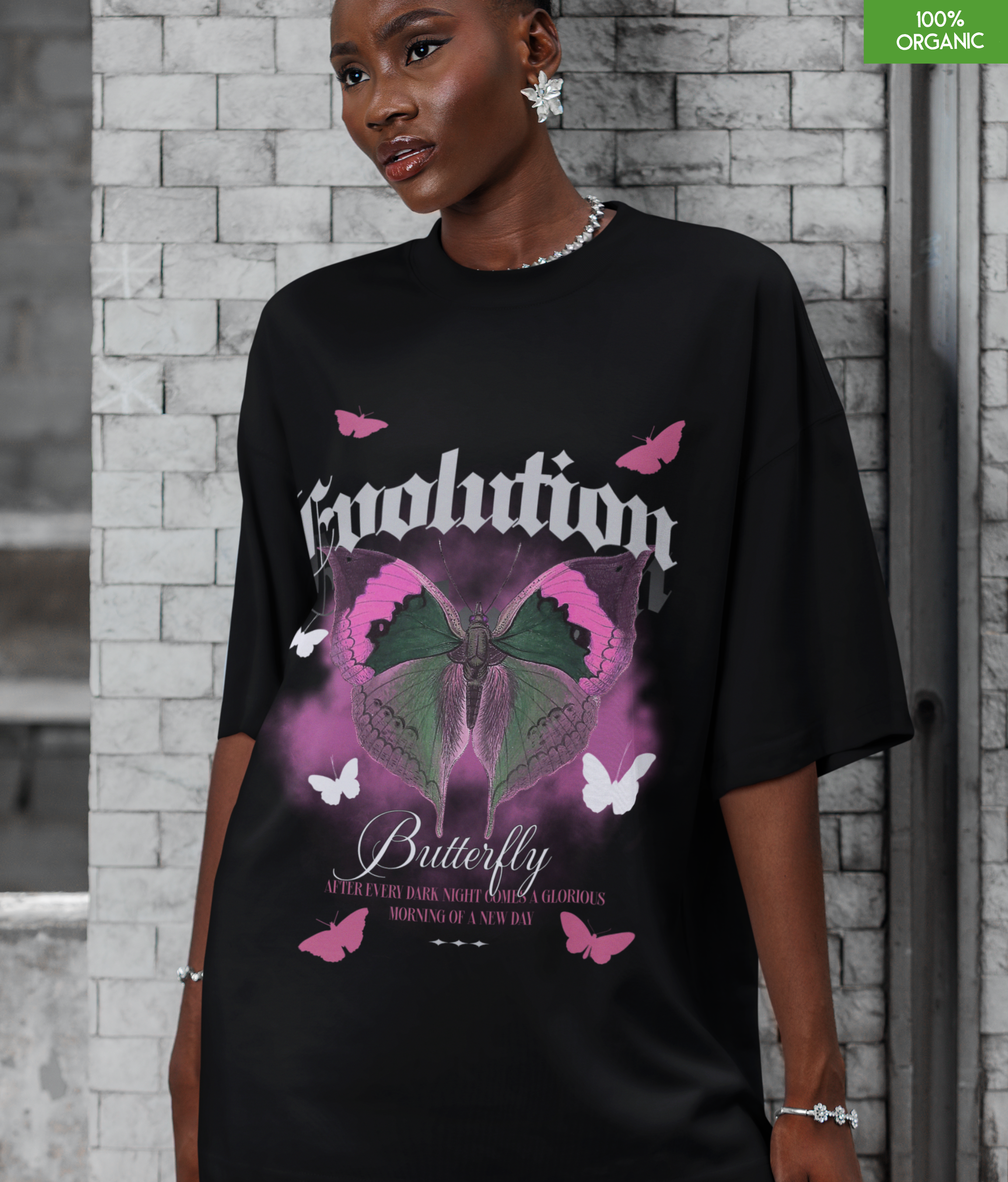 Evolution Butterfly Oversized T-Shirt – Gothic Graphic Tee – Transformation & Renewal – 100% Organic Cotton